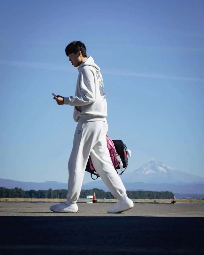 这当中我国球员杨瀚森也是出现在其中,图片中他一手拿着手机,一手提着两个包,其中一个正是此前跳舞背着的粉色小书包。