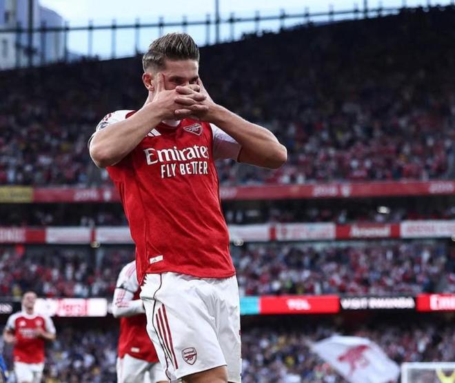 第35分钟,阿森纳打出简洁快速的反击:哲凯赖什策化进攻,特罗萨德下底左路横传,赖斯轻松头球再下一城,帮助球队将比分扩大到了2-0,下半场双方均无建树,最终阿森纳2-0全取3分,拿下此役后,枪手更是豪取各项赛事9连胜,继续领跑英超积分榜。
